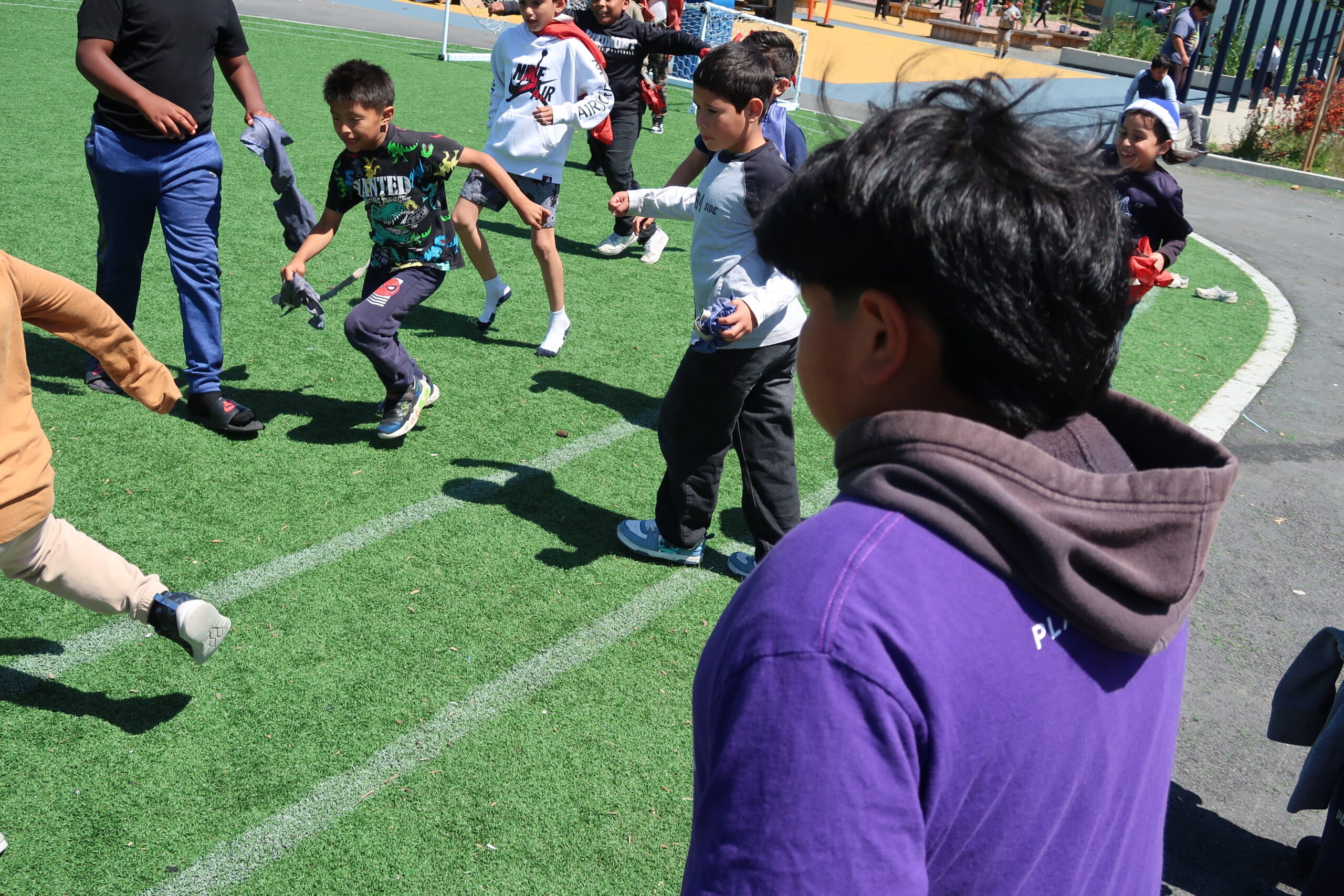 A 5th grade student had Brittle Bone Disease, a rare condition where his bones are fragile and prone to fracture. In his four years at the elementary school, he had never been included in play. He would go outside during recess but he never tossed a ball, never went down the slide, never participated in a game of tag, so he never got to benefit from connecting with his peers or adults at school through play. “The school knew and loved this kid and didn’t want him to get hurt,” said former Playworks trainer Lynn Debilzen.